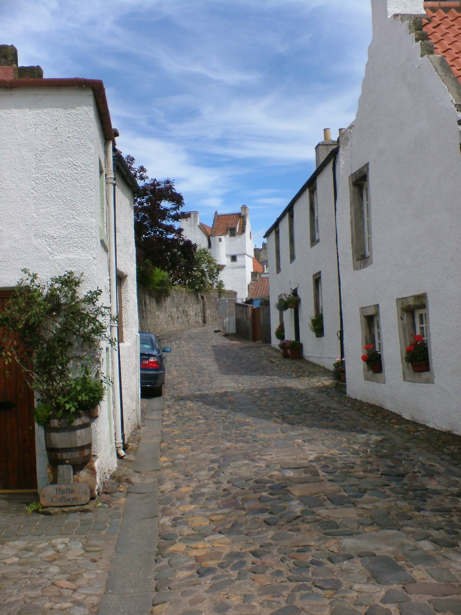 I took some pictures in Culross last weekend. Culross is an old town in Fife, just along the coast from Longannet power station and across the Forth from the massive oil refinery at Grangemouth. In that sense it is similar to Pitkirtly. However, I realised when we got home and I looked at the photographs that it is actually far too picturesque a town to be similar to Pitkirtly in any other way. It has old wynds with cobbles underfoot, a 16th century ‘palace’ (not really a palace but a town house built for a merchant) with beautiful gardens, and a manicured park and play area near the river front.