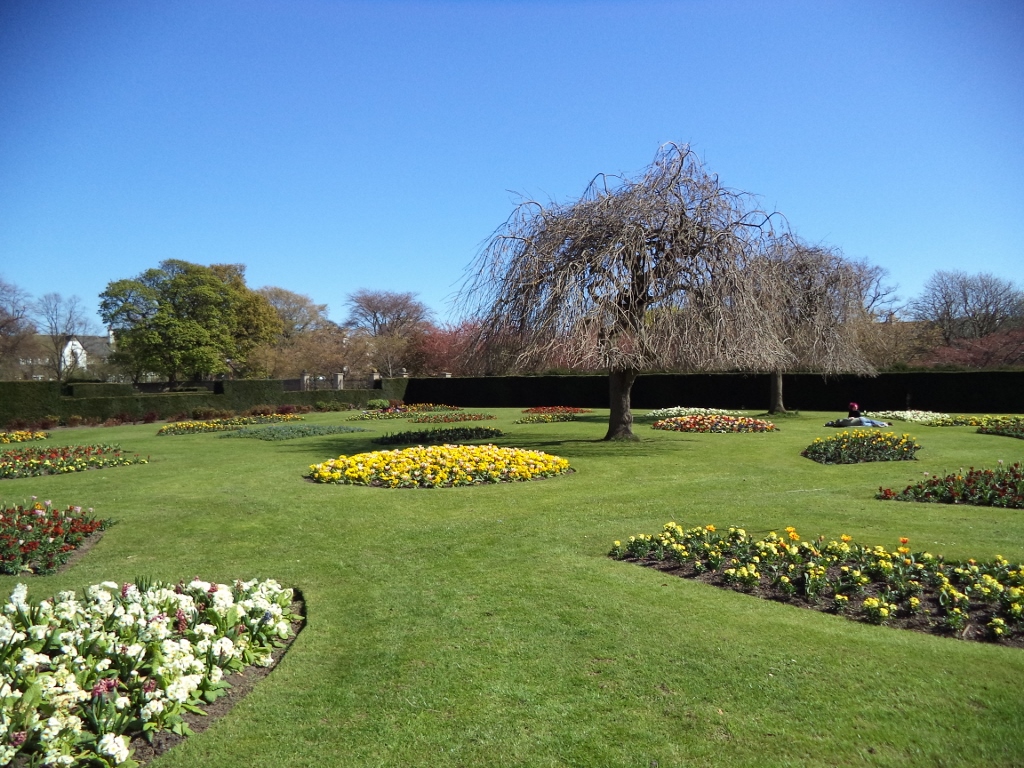 Naturally, now that I’m in the middle of something completely different, my mind has returned to the novella I was working on last month (‘Adventure at the National Exhibition’). Because it was sunny and I had my new camera to hand I finally managed to get to Saughton Park to see the site of the Scottish National Exhibition of 1908. The park is very nearly within walking distance of my house, but I had put off going there all through the winter for various trivial reasons. There is nothing left of the buildings that were erected for the National Exhibition, but the layout is still fairly similar and I suspect the gates (situated on the corner of Gorgie Road and Balgreen Road) or at least the gateposts and access road are the same. The gateposts, however, look as if they were originally meant to have some sort of ornate decorative feature on top. The current ‘Winter Garden’ and rose garden are, I think, in the same places as they were in 1908, and there are quite a few formal garden features that may be part of the legacy of the Exhibition.