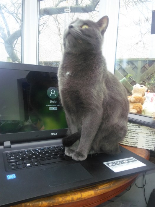 I’ve spent this afternoon adding new chapter headings to remind myself to write a bit more in certain places, and moving large chunks of text about, especially towards the end. Moving chunks of text is quite a high risk strategy as the mouse-pad on my current laptop is quite erratic and sometimes decides to select a different chunk of text from the one I thought I had selected. There’s also the strong possibility of sabotage by cat, especially now that there are three cats, at least one of whom is very stubborn about settling down on the keyboard.