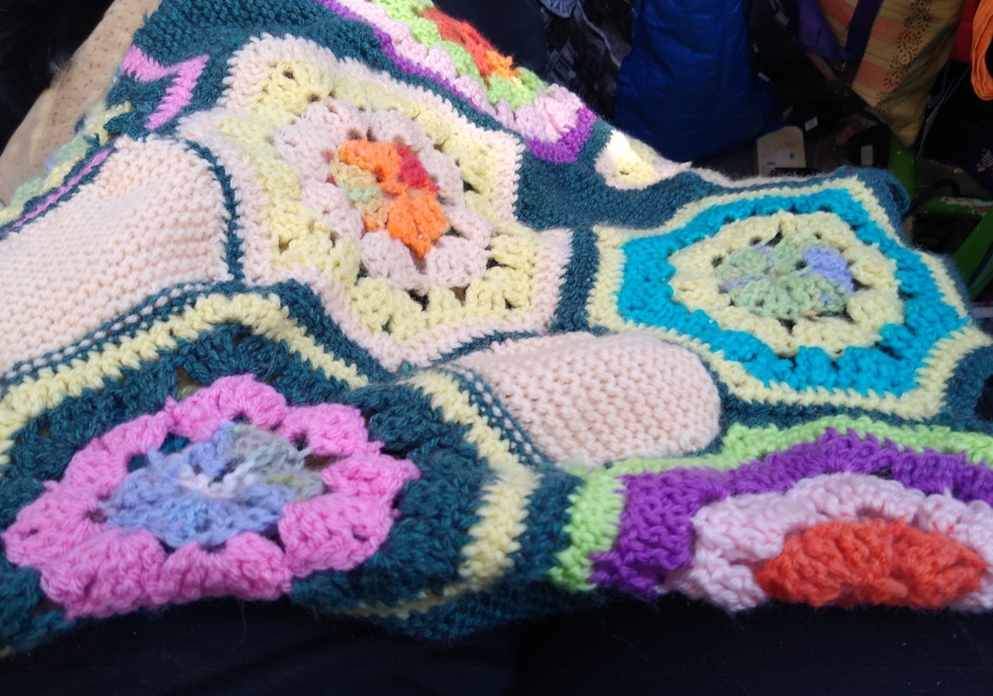 If anyone has been following the tale of the crocheted octagons (possible future book title?) I can now reveal that I’ve now joined them up into a small blanket – see below.