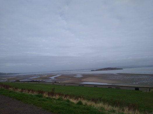 I took a couple of pictures just after getting out of the car. They didn’t come out very well as it was quite a cloudy morning, but I’ll include one here as it shows the promenade with the sea-wall, the beach and a bit further away Cramond Island and the causeway.